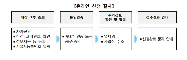 온라인 신청을 원칙으로 하며 포털사이트에서 소상공인 전기요금 특별지원 검색 또는